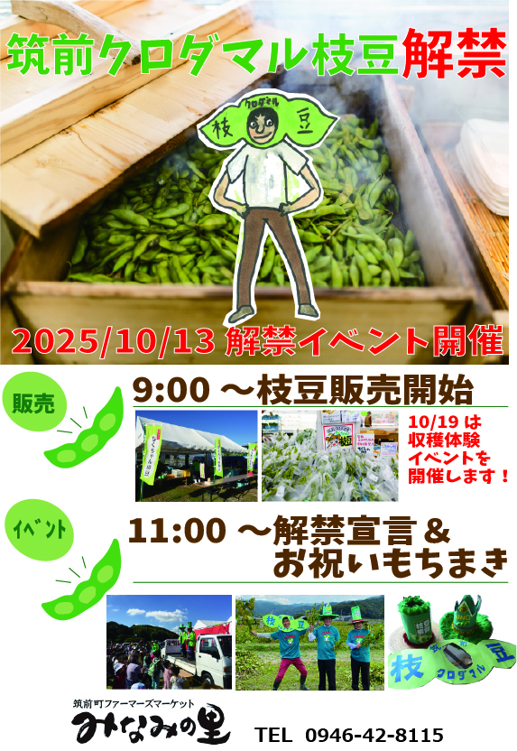 「ちくちゃん枝豆(筑前クロダマル枝豆)」10/13(月)解禁。