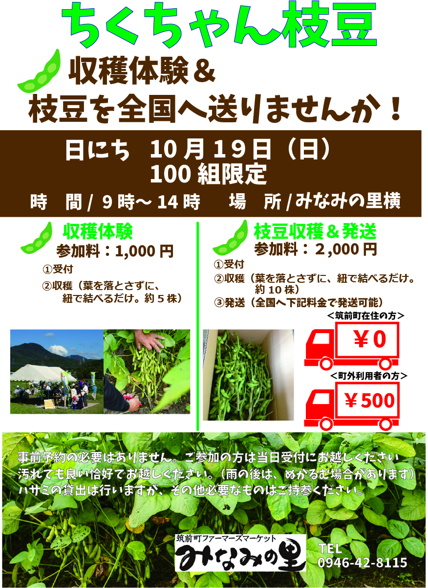 「ちくちゃん枝豆(筑前クロダマル枝豆)収獲体験」