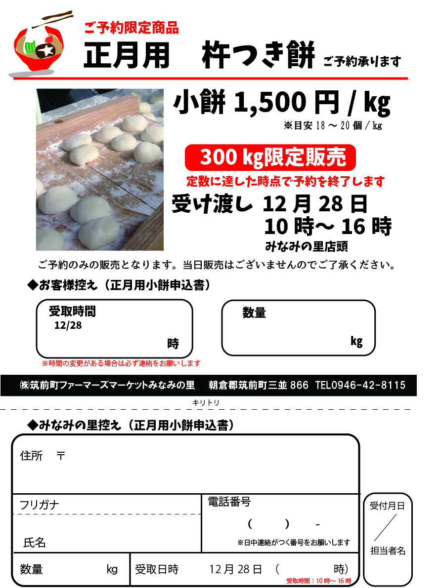 「正月用 杵つき餅」ご予約受付中!